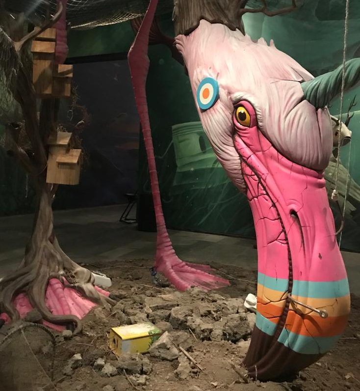 Como detallaba el artista urbano, Dulk "hemos creado un mundo de fantasía, pero basado en la realidad que está viviendo la Albufera". Para ello, "hemos hablado con profesionales y gente que vive en este parque natural, pero también hemos traído al Centre del Carme tierra de la misma Albufera, en la que se aprecia que los microplásticos forman parte de ella".