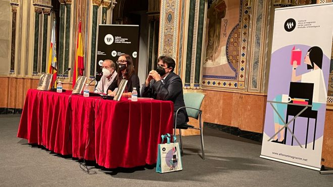 La sala Alfons el Magnànim del Centre Cultural de la Beneficència ha acogido la presentación del libro 'Manuel Boix. La forja d'un pintor' con la asistencia de la vicepresidenta de la Diputació y presidenta de la Institució Alfons el Magnànim, Maria Josep Amigó, el escritor de la obra, Martí Domínguez, y el artista Manuel Boix.