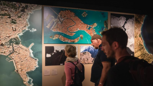 El itinerario de ‘Mediterranea’ se organiza en tres áreas temáticas distintas. La primera, ‘Historia de tierras y aguas, pueblos y culturas’, ofrece una narrativa visual que abarca desde los inicios del Mediterráneo hasta la actualidad, explorando los eventos y las civilizaciones que han dado forma a su identidad única. Esta sección se apoya en mapas antiguos y en imágenes de satélite para llevar al público en un viaje por sus costas y su patrimonio cultural.