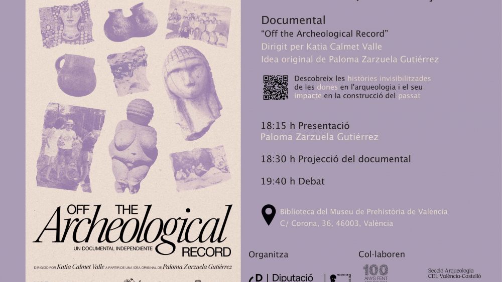 Este martes, en la biblioteca del Museu de Prehistòria de València, propiedad de la Diputación, se presenta al público el audiovisual ‘Off the archaeological record’, dirigido por Katia Calmet Valle, con guion de Paloma Zarzuela Gutiérrez. Este audiovisual forma parte de la investigación de la tesis doctoral de Paloma Zarzuela, quien indaga en la situación de las mujeres en el desarrollo profesional de la arqueologia.