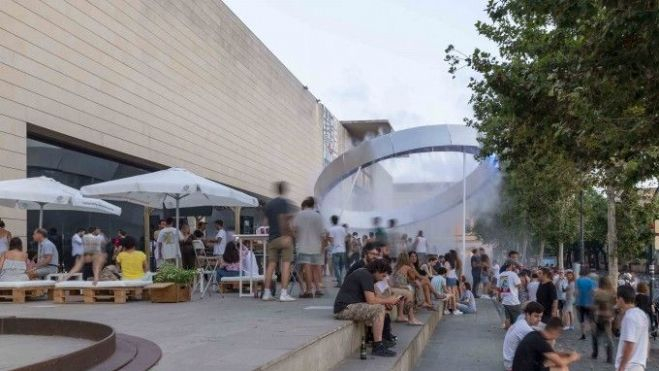 La instalación artística, apodada como la ‘nube’ del IVAM, tiene programadas lluvias, desde las 20.00 horas hasta las 24.00 horas, para refrescar a los asistentes al ritmo de la música.