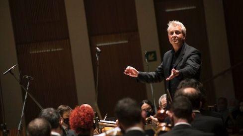 La Orquesta de València, bajo la dirección de su titular y artístico Alexander Liebreich, está ultimando los ensayos de su concierto de abono que despide 2022, en el que se estrenará en España la sinfonía dramática para violín y orquesta Scheherazade. 2 de John Adams, que protagonizará la violinista canadiense Leila Josefowicz, junto con Aleksandra Dzenisenia en el címbalo húngaro. Se trata de un programa que cierra la programación de Otoño del Palau de la Música, que tendrá lugar en el Auditori de Les Arts, mañana jueves, a las 19.30 horas, y dónde también se podrá escuchar la Sinfonía nº 4 en mí menor, op. 98 de Johannes Brahms.