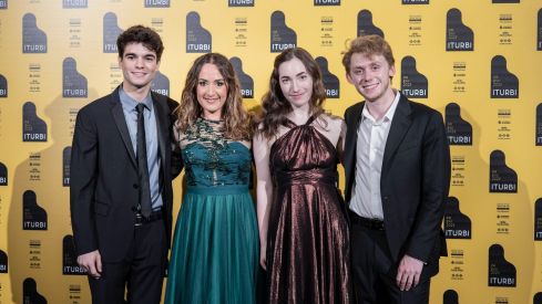 La diputada Glòria Tello con los ganadores del Premi Iturbi:  Elia Cecino, Anthony Ratinov y Rachel Breen