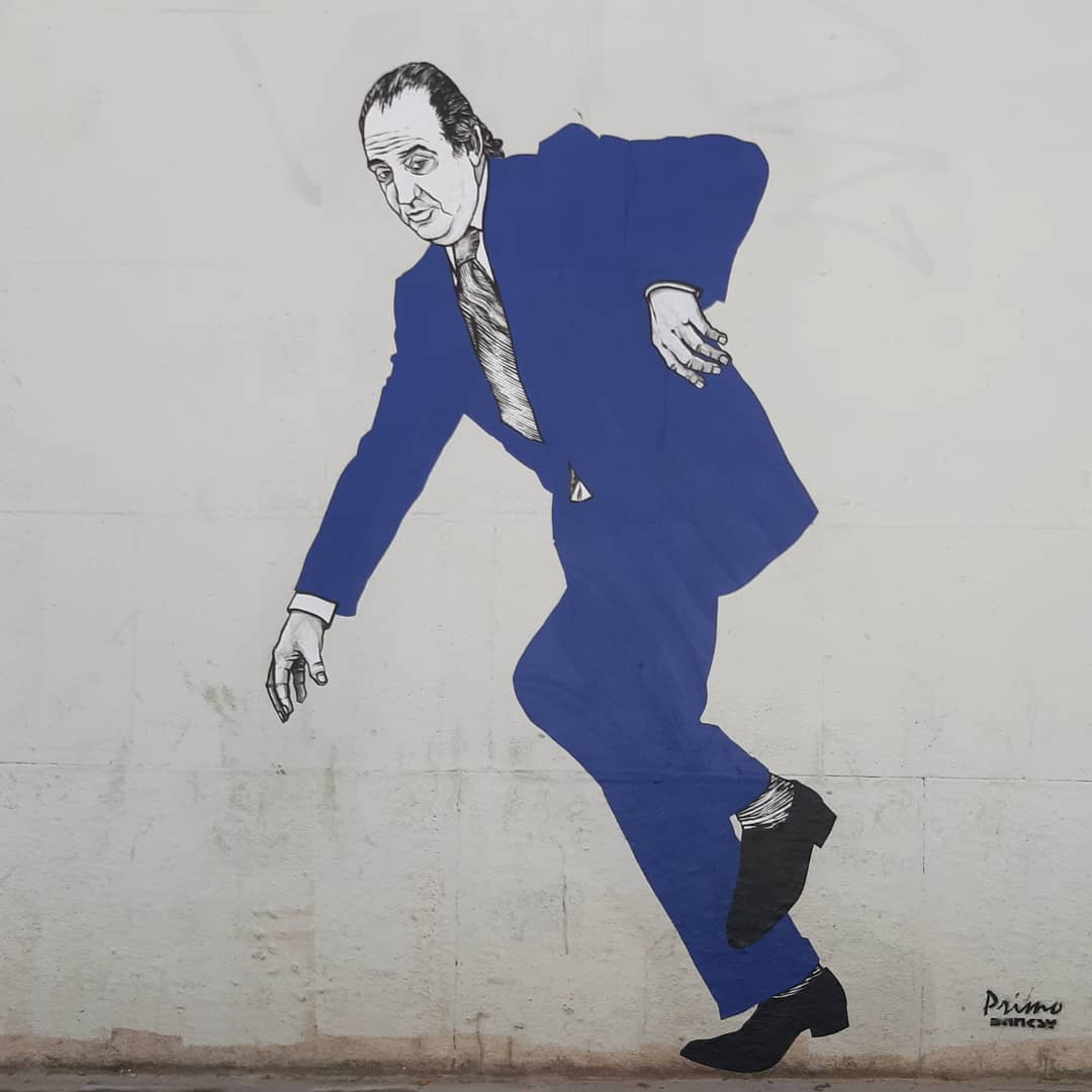 Las calles son un reflejo de la sociedad. Sus paredes ven cómo los transeúntes día tras día pasan por ellas, y son testigo de cómo se transforman, de cómo evolucionan y cambian paulatinamente. El carrer de les cadires ahora es testigo de una analogía de la repentina salida del exmonarca del país, el secretismo a cerca de su salida y su paradero con un graffiti que está a pie de calle. Y nunca mejor dicho, ya que el artista gallego ‘Primo Banksy’ ha realizado un graffiti de Juan Carlos I, el rey emérito, donde se ve al monarca tropezando. En esta figura, el autor de la pintura ha querido plasmar una metáfora para representar los últimos escándalos personales y financieros del exmonarca. En València Extra hemos podido contactar con este artista anónimo, quien a penas concede entrevistas.