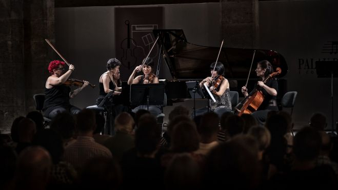 El Quinteto Casulana subirá mañana sábado al escenario del Almudín, a las 19.30 horas, para interpretar un concierto dentro del ciclo “Cambra al Palau” que organiza el Palau de la Música. Este quinteto propondrá al público un programa en femenino en el que figura el Quinteto para piano y cuerdas, op. 67 de la compositora norteamericana Amy Beach, y “Lala Theme” de la valenciana Sara Galiana. Completa el programa el Quinteto para piano y cuerdas en sol menor de Dmitri Shostakóvich.