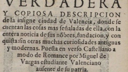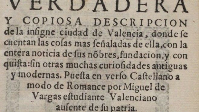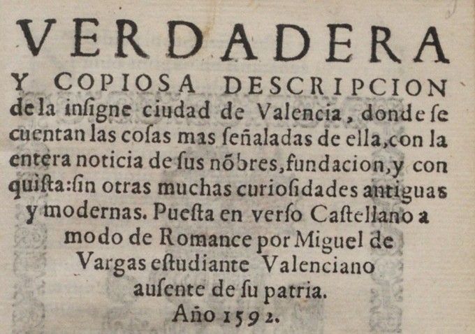 Considerada el "arquetipo de una literatura historiográfica", elaborada para exaltar las bondades de una ciudad y usada habitualmente en fiestas urbanas para contribuir a mantener el orgullo patrio, esta guía de la ciudad de València fue escrita por Miguel de Vargas en 1592.