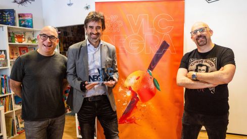 El jefe de contenidos de VLC Negra, Santiago Álvarez, el director del festival, Jordi Llobregat y el concejal José Luis Moreno durante la presentación
