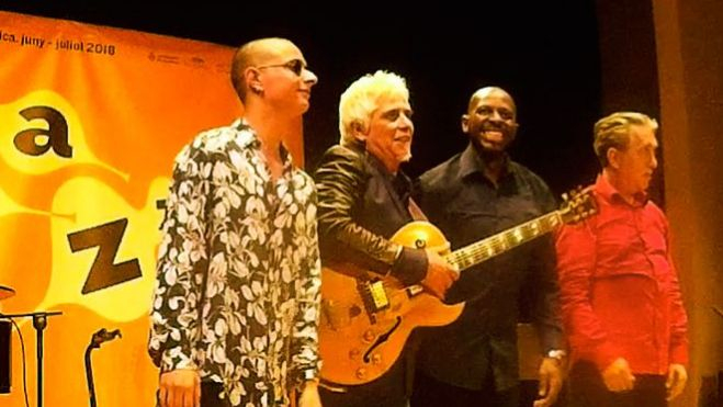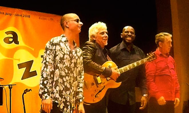 Ximo Tebar y sus músicos subieron al escenario de la Sala Joaquín Rodrigo dispuestos a poner un broche de oro al último concierto del Festival de jazz, y lo consiguieron. El grupo liderado por Tebar junto al potente batería norteamericano Nathaniel Townsley, el bajista madrileño Victor Merlo, y el pianista, teclista y vocalista valenciano Will Martz, desgranó a lo largo del concierto versiones de clásicos del jazz como Con Alma de Gillespie, Take Five de Paul Desmond, o United de Wayne Shorter, temas que pertenecen al nuevo álbum “Con Alma & United” que Ximo presentó en este concierto en el que primó el virtuosismo y la luminosidad de su sonido mediterráneo ante un público entregado que acabó en pie brindando un cerrado aplauso al carismático guitarrista valenciano.
