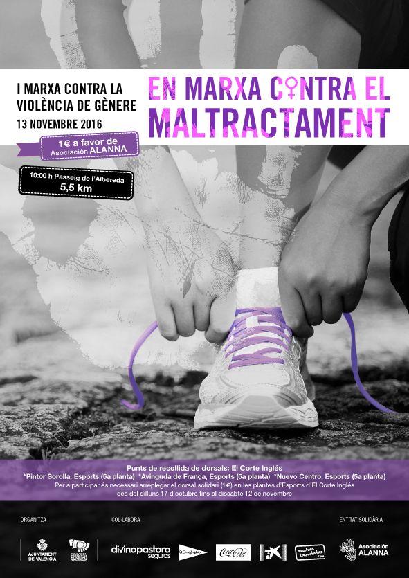 La inscripción puede realizarse en las plantas de Deporte de los centros de El Corte Inglés de Pintor Sorolla, Avda. Francia y Nuevo Centro de Valencia. La cuota simbólica de 1€ se destina íntegramente a la Asociación Alanna, organización que desarrolla proyectos para luchar contra la violencia de género y evitar la exclusión social de los colectivos femeninos más desfavorecidos.