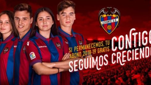 El Levante UD comienza la campaña de abonos de cara a la temporada 2017-18 en Primera División. Bajo el lema "Contigo seguimos creciendo", el club granota busca llenar el Ciutat de València jornada tras jornada como ya ocurriera en esta temporada que acaba de finalizar. Aquellos que presenciaron el 80% de los partidos como local del conjunto granota podrán renovar de forma gratuita tras conseguir el ascenso. Del mismo modo, todos los abonados que acudan, como mínimo a 19 encuentros al feudo de Orriols, también renovaran de forma gratuita el abono para la campaña 18-19 si el Levante logra la permanencia en la máxima categoría del fútbol español. Entre otras ventajas que tienen aquellos que acompañaron al equipo en el camino de Segunda, está el mantener los precios de la categoría de plata si no pueden acceder a la gratuidad de los mismos. Para esta temporada los abonos infantiles de hijos o nietos de abonados también serán gratuitos. Los usuarios de la APP Granota Fan Club podrán disfrutar de su Abono Digital para acceder al estadio desde la propia aplicación.