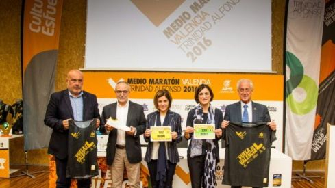 Valencia abre sus puertas a los más de 13.500 corredores del mundo que participarán en el Medio Maratón Valencia Trinidad Alfonso, organizado por la SD Correcaminos. La 26ªedición de la carrera de 21.097,5 metros de la ciudad ha hecho historia y se ha convertido en referencia mundial con la consecución de la Road Race Gold Label de la IAAF. Por ello, la Ciudad del Running se vestirá de oro el 23 de octubre por este logro que se produce por primera vez en la historia de las carreras de España. Así se ha destacado en el acto de presentación oficial que ha sido liderado por Elena Tejedor, directora de la Fundación Trinidad Alfonso; Paco Borao, presidente de la entidad deportiva de la prueba; Maite Girau, concejala de deportes del Ayuntamiento de Valencia; y Vicente Tarancón, director general de Luanvi, principal marca patrocinadora.