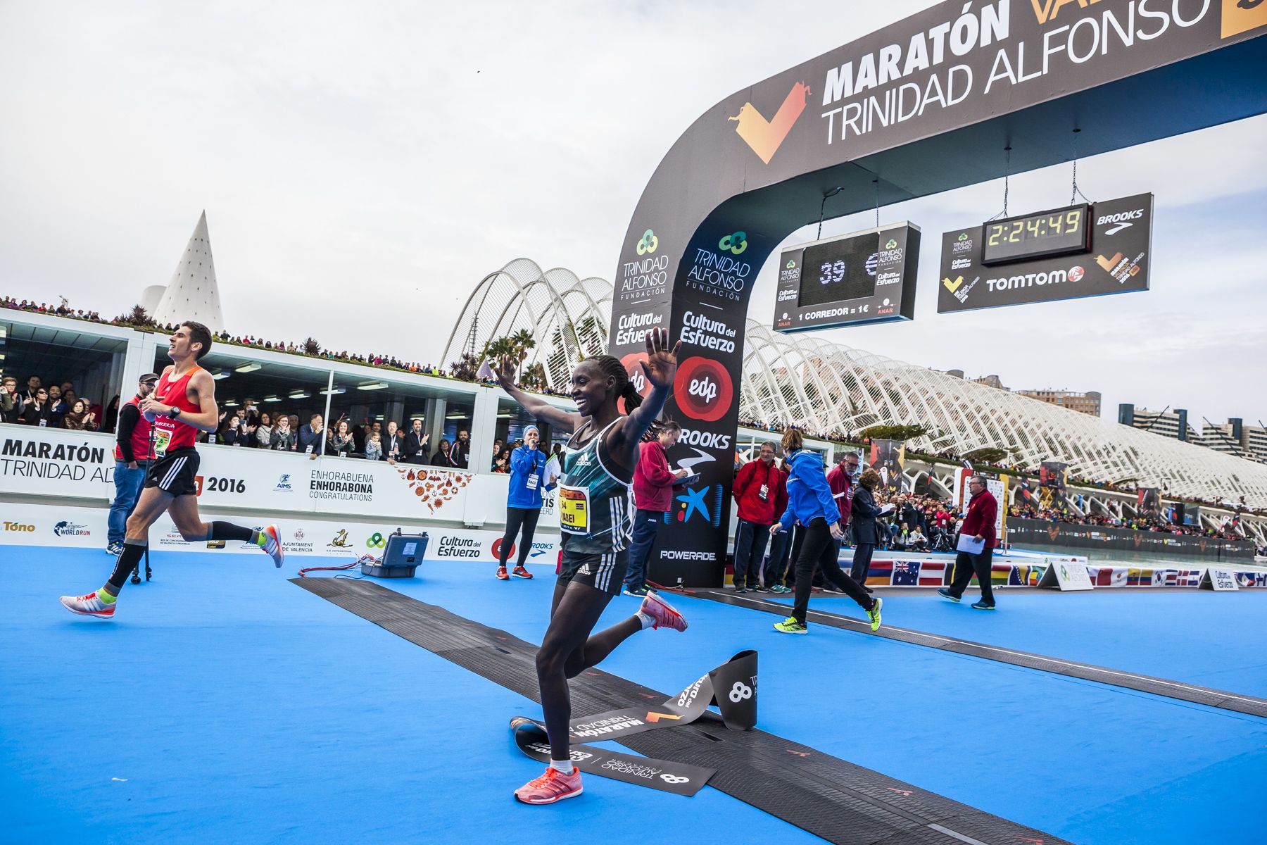 El Maratón Valencia Trinidad Alfonso EDP, organizado por la Sociedad Deportiva Correcaminos y el Ayuntamiento de Valencia, se ha consolidado en su 36ª edición como la carrera más rápida a nivel nacional en categoría femenina, lo cual se suma a ser la primera española en celebrarse con Etiqueta de Oro concedida por la IAAF. En concreto, dicho mejor tiempo lo ha logrado Valary Jemeli Aiyabei con 2:24:49, superando en más de dos minutos el anterior registro de 2:26:57. El pódium de mujeres lo han completado Nancy Jespkosgei Kiprop con 2:25:13 y, en tercera posición, Bethelem Moges Cherenet con 2:26:11.