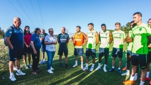 La casualidad ha querido que la plantilla del Levante UD se encuentre estos días en Ermelo, un municipio holandés a medio camino entre Franeker y la capital de Países Bajos. Una situación que la selección valenciana de Pelota a Mano y la diputada Isabel García no han querido desaprovechar para hacer un alto en el camino y acercarse al campo para animar y presenciar uno de los entrenamientos vespertinos del club granota con el que también colabora la institución provincial.