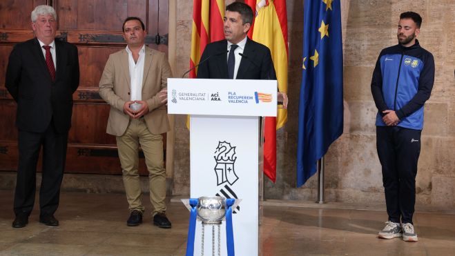 El president de la Generalitat, Carlos Mazón, ha recibido al Servigroup Peñíscola FS tras proclamarse campeón de la Copa de España de fútbol sala por primera vez en sus 25 años de historia.
