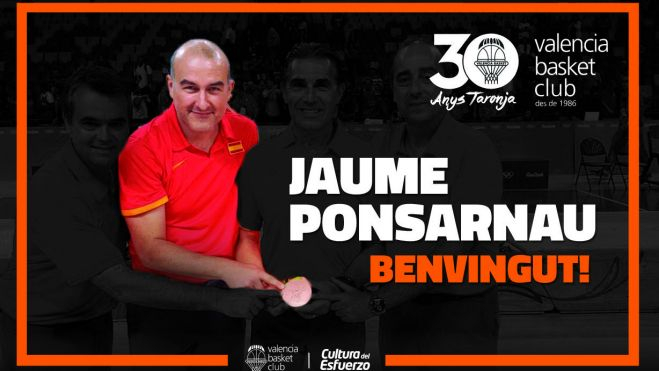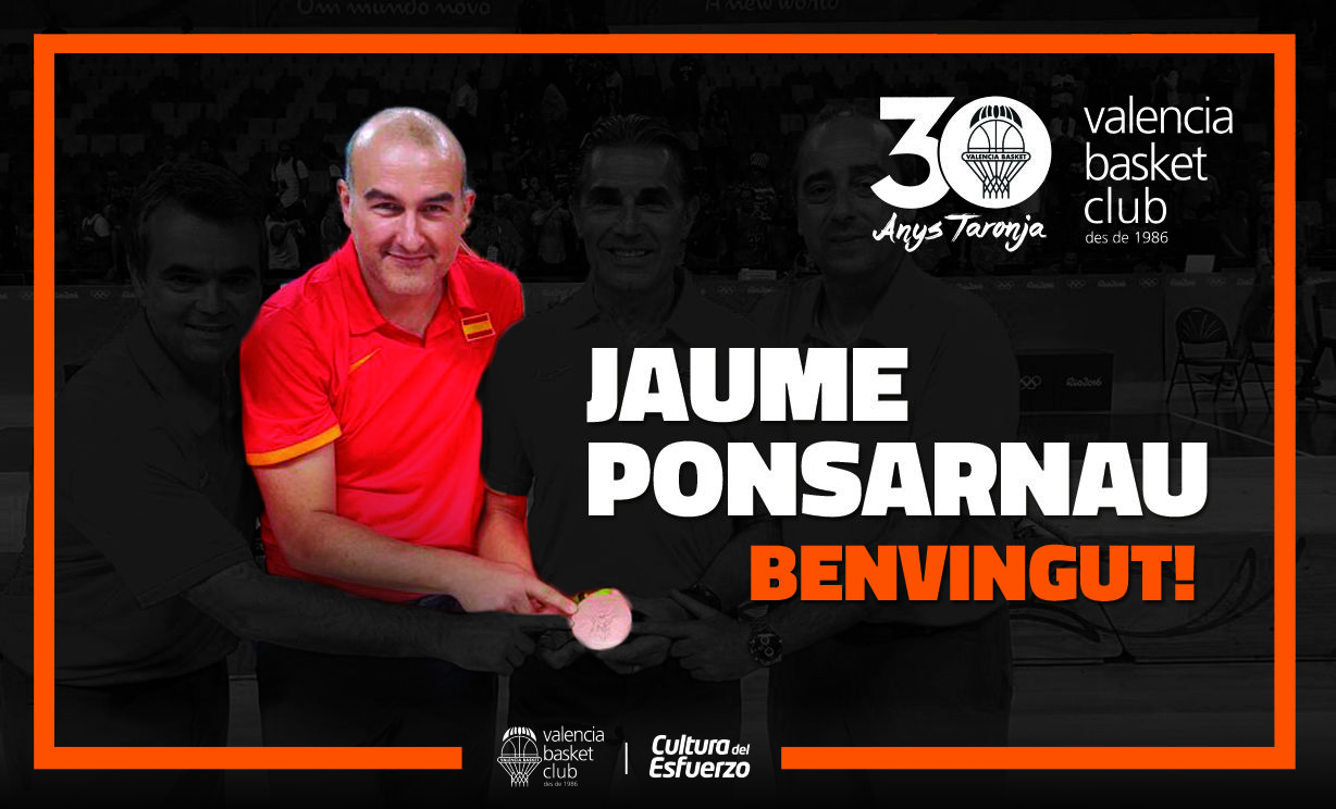 Y el crono se puso en marcha. La plantilla ya está trabajando a las órdenes de Pedro Martínez para preparar la nueva temporada que comenzará el próximo 1 de octubre ante el CAI Zaragoza. Sin embargo, fue ayer mismo cuando el equipo quedó completamente formado con la incorporación de lujo de Jaume Ponsarnau como segundo entrenador del primer equipo. La llegada del técnico ilerdense se produce tras la salida de Carles Duran (quien se marchó como entrenador al Dominion Bilbao Basket). Ponsarnau (28/04/1971, 45 años) cerró su ciclo el pasado domingo como parte del cuerpo técnico de la Selección Española de Baloncesto adjudicándose el bronce en los Juegos Olímpico de Río. El que será mano derecha de Pedro Martínez en el banquillo taronja llega hoy a Madrid procedente de Río.