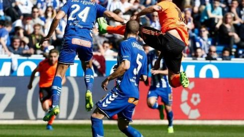 El Alavés tuvo el dominio del balón durante todo el primer tiempo mientras que el Valencia intentaba llevar el balón a sus delanteros, que recién tuvieron protagonismo en el 17’, cuando Carlos Soler casi supera a Pacheco.
