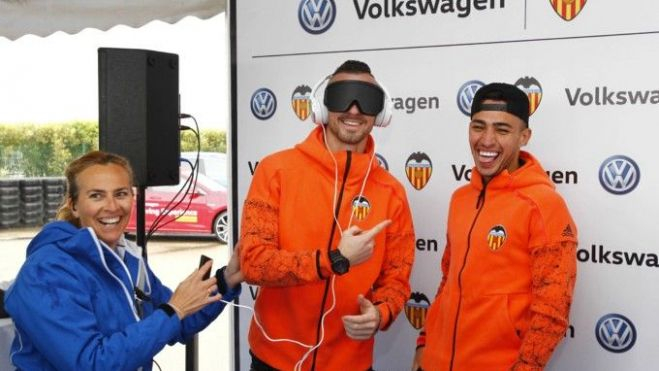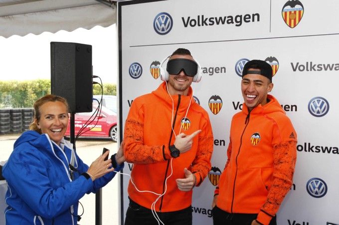 De este modo, los valencianistas formaron tres parejas para participar en el reto que les propuso Volkswagen en el circuito de Cheste. Con los ojos vendados, uno de los miembros de cada equipo tuvo que elegir entre un Golf GTI, un GTE (híbrido y enchufable) y un e-Golf (100% eléctrico).