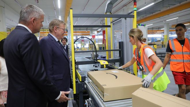 El nuevo Centro Logístico de Amazon en la localidad castellonense de Onda se suma a las dos estaciones logísticas con las que cuenta ya en el territorio (Paterna y Alicante) y la que prevé poner en funcionamiento en Picassent. Con una inversión de 100 millones de euros la multinacional estadounidense de comercio electrónico creará en torno a un millar de empleos directos. Su efecto tractor sobre otras empresas se materializa ya con la futura instalación de potentes grupos empresariales como el Grupo Roker, líder del mercado eléctrico de Argentina que inicia su expansión en Europa desde Onda.
