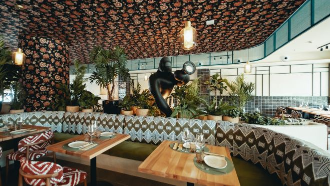 Uno de los grandes atractivos de Papúa Valencia es su cuidado diseño interior, firmado por Nadia Mateo y Juan Jacobo Muñoz, del estudio Mediterráneas Duque. La decoración, de estilo contemporáneo, incorpora elementos tropicales, abundante vegetación y los ya icónicos animales de Papúa, creando un entorno inmersivo, elegante y fiel a la identidad de la marca.