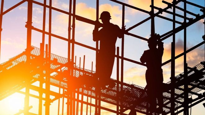 Imagen de archivo de trabajadores en una construcción