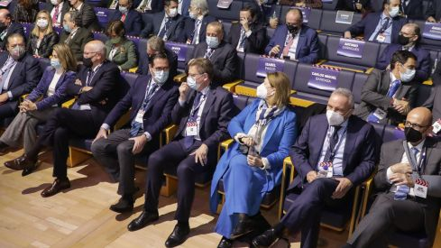El president de la Generalitat, Ximo Puig ha asistido en Madrid al acto empresarial por el Corredor Mediterráneo y segundo chequeo semestral 2021, bajo el lema 'España está perdiendo el tren', en el que ha reiterado la necesidad de acelerar la ejecución de esta infraestructura para que sea una realidad lo antes posible.