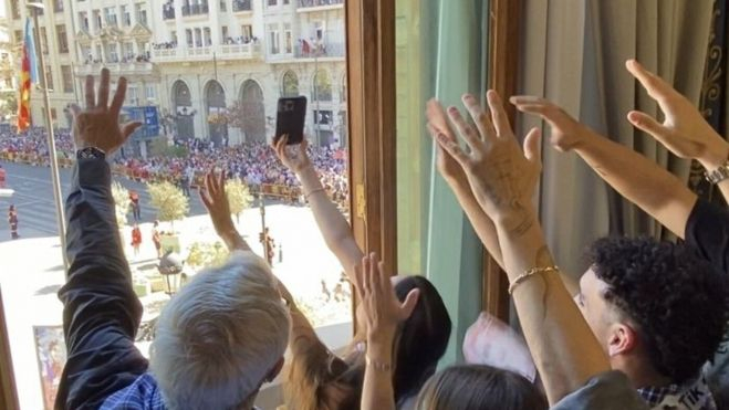 El balcón de la mascletà de València se llena de influencers por Fallas