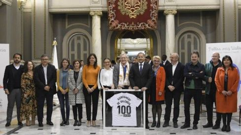El Valencia CF entrega a Ribó la bandera de su centenario