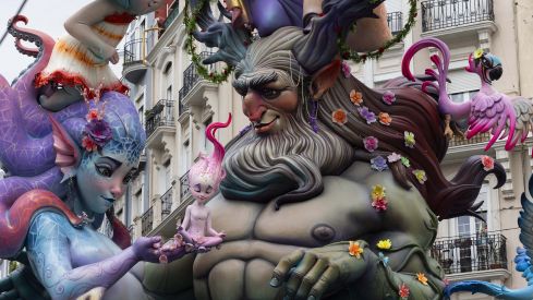 Al igual que el simbolismo que envuelve las fallas, el equipo liderado por el reconocido artista ha conseguido sacar del barro la falla para los falleros y falleras de Sueca-Literato Azorín. Con el lema ‘Reset’, muestra una escena fantástica compuesta por personajes mágicos y elementos naturales personificados. Como elemento central, hay una figura anciana con barba blanca y grandes cuernos adornados con ramas y flores, dando la impresión de un espíritu antiguo de la naturaleza.
