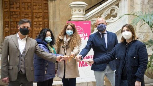 En ausencia de las habituales presentaciones a causa del protocolo de seguridad anticovid, el presidente Gaspar ha querido agradecer a los responsables de la fábrica de espolines Garín, Pirotecnia Caballer FX, Art Antic y el taller de Vicente Luna su participación en el audiovisual sobre el que gira la campaña fallera de la Diputación. Mª José Lora, presidenta de Piroval, José Alabadí, del taller de orfebrería Art Antic, y las hermanas Mª Pilar y Mª José Luna, artistas falleras, han visitado el Palau de la Batlia junto al propio Javier Valiente, donde han intercambiado impresiones sobre la campaña con Toni Gaspar.La presidenta de Piroval y responsable de Caballer FX ha destacado la importancia de mantener el sentimiento fallero y de proyectos que revitalizan la actividad del sector, caso del ‘Torna la llum’ impulsado por la Diputació. En la misma línea se ha expresado José Alabadí, que ha puesto el foco en la importancia de "poner música y alegría para recuperar el interés por unas fiestas que no vamos a vivir como quisiéramos".