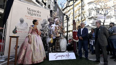 La trayectoria profesional de Manuel Algarra incluye ocho ninots indultats y 15 monumentos plantados en la Sección Especial. El alcalde se ha referido a la forma de trabajar del artista “que planteaba su trabajo –ha afirmado- con una decidida voluntad de enamorar al espectador”. “Gracias a su dominio de la técnica compositiva, sus formas y volúmenes se integraban perfectamente en el espacio público, sin desatender la sátira y la crítica como aspectos esenciales de la falla –ha explicado Ribó- con lo que conseguía uno de los objetivos de todo artista que expone su obra en el espacio público: dialogar con la ciudad y sus habitantes”.