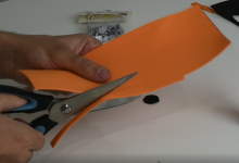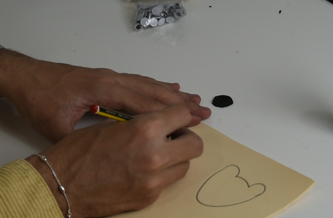 - En primer lugar, en la goma Eva naranja haz un rectángulo de 8cm de ancho y 20 de largo