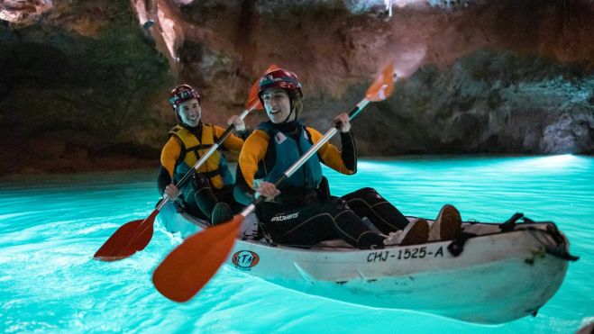 El agua del río subterráneo tiene una temperatura constante de 20 grados, por lo que, además de poder visitarse durante todo el año, la convierte en irresistible para visitar la cueva en kayak. Así lo ha creído conveniente el departamento de Turismo de la Vall d’Uixó, que organiza esta actividad desde hace varios años.