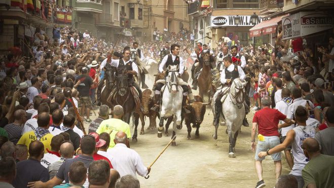 La emoción y el riesgo de las Entradas de Bous i Cavalls de Segorbe llegan del 4 al 10 de septiembre. À Punt nos acerca en directo esta fiesta, declarada de interés turístico internacional, de la mano de Ferran Cano i Marta García. Cada Entrada es un espectáculo audiovisual en que la manada de bueyes va dirigido por la calle de Colón por una docena de valientes y hábiles jinetes. Cada día, de lunes en adelante, a las 13:55 horas las espectadoras y espectadores tienen una cita con la televisión de À Punt para empezar el mes con nuestras fiestas más arraigadas.