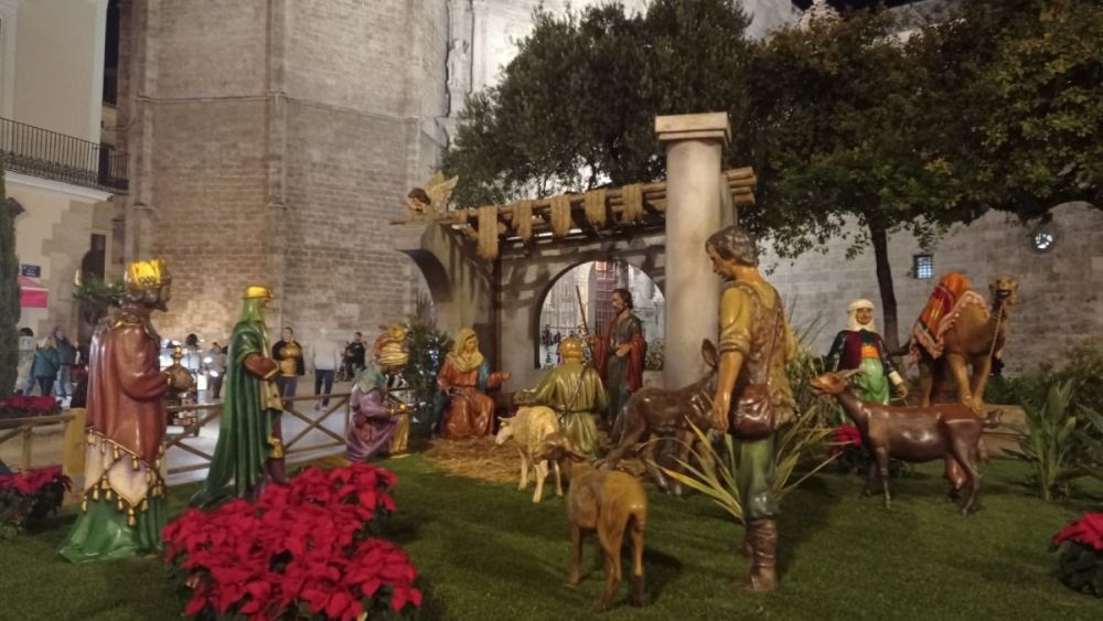 El belén municipal de tamaño natural ubicado en la plaza del Ayuntamiento y el de la plaza de la Reina, completan la visita a los principales pesebres de la capital del Túria estas navidades.