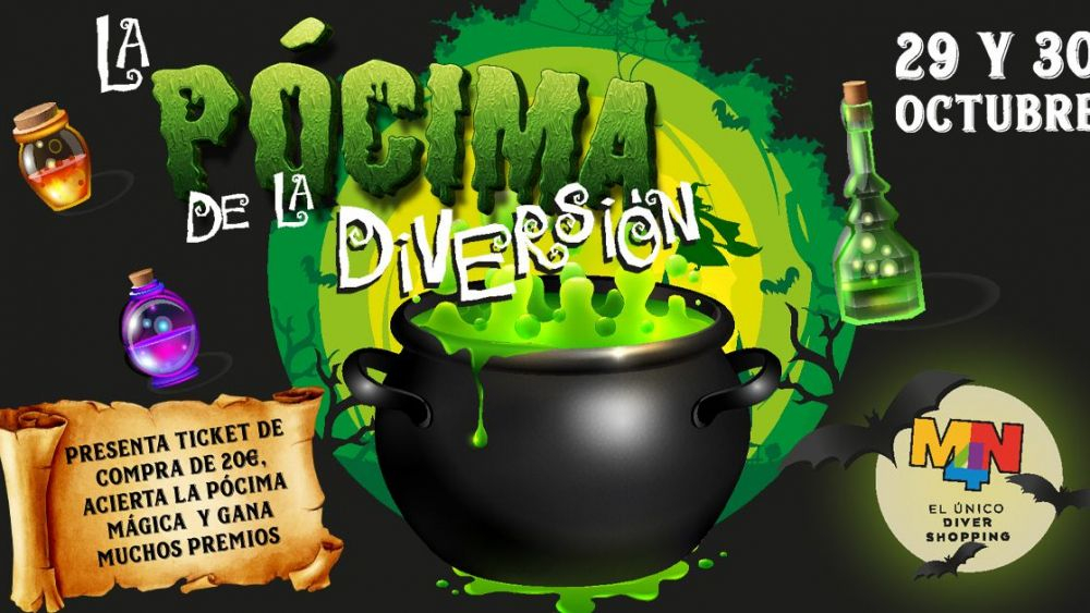 El Centro Comercial y de Ocio MN4, ubicado en la localidad de Alfafar, celebra en su planta baja la fiesta de Halloween más aterradoramente divertida. El evento tendrá lugar el viernes, 29 de octubre, y el sábado, 30 de octubre, de 17 a 21 horas, y los asistentes podrán ganar regalos formulando una pócima mágica en una ambientación enfocada al público familiar.