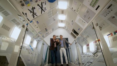En el Museu de les Ciències, Joaquín, de la mano de Pedro Duque, se anima a subir al ‘Simulador Espacial’. que recrea un viaje a la Estación Espacial Internacional, y experimentan la sensación del ‘Cubo Gravedad Cero’,  una instalación cubierta de espejos en su interior, donde se proyectan imágenes reales del cosmos y de la Tierra vista desde el espacio.