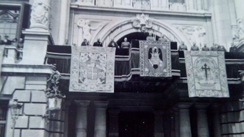 Este era el aspecto del balcón del Ayuntamiento de Valencia en el año 1936