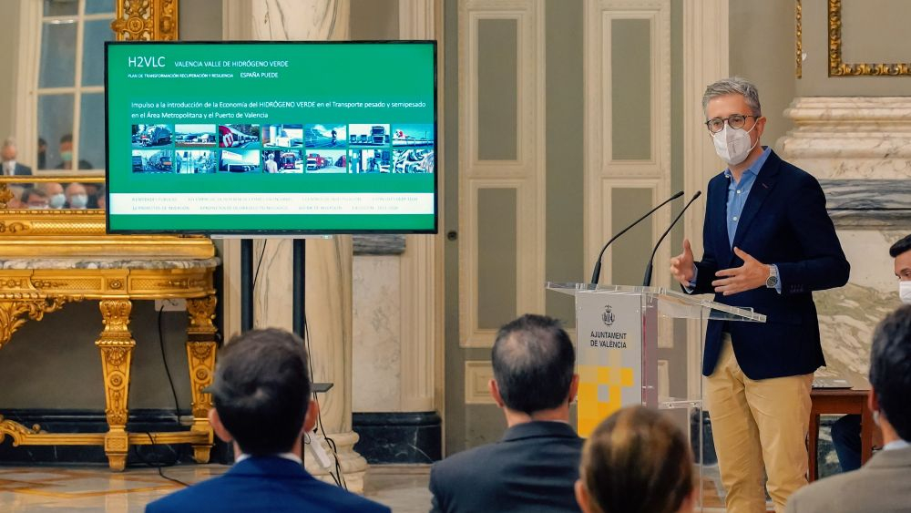 En estos términos se ha pronunciado el máximo responsable de Movilidad tras la firma de la Declaración de Intenciones sobre el Programa de Despliegue de la Economía del Hidrógeno Verde en el Sector del Transporte y la Logística en el Área Metropolitana de València y el Puerto de València, València Valle de Hidrógeno-H2VLC, entre el Ayuntamiento de València, la Fundación Valenciaport y la Universitat Politècnica de València. Al acto han asistido también la secretaria autonómica de Obras Públicas, Transporte y Movilidad, María Pérez, y la directora gerente de Ferrocarrils de la Generalitat, Anaïs Menguzzato.