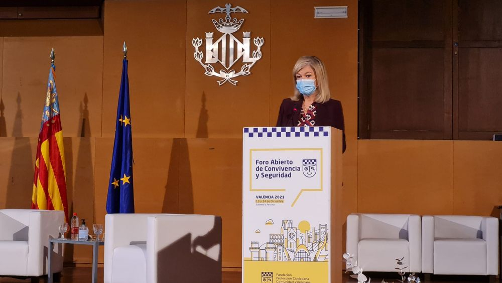 La consellera de Justicia, Interior y Administración Pública, Gabriela Bravo, en la apertura del Foro de Convivencia y Seguridad