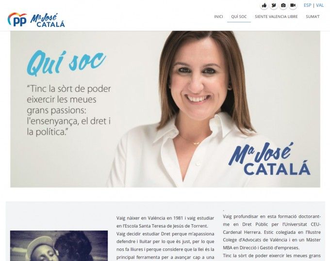 María José Català presentó ayer, en el ático del Café Madrid, su primer spot y web de campaña, ambos con el eslogan "Siente Valéncia libre", en el que aseguró que el Cap i Casal está "sometida" a los "designios" del Govern de La Nau. El acento erróneo cerrado en el topónimo de la ciudad no es casual, igual que muchas otras faltas que se pueden encontrar en la web 'sientevalencialibre.es'.