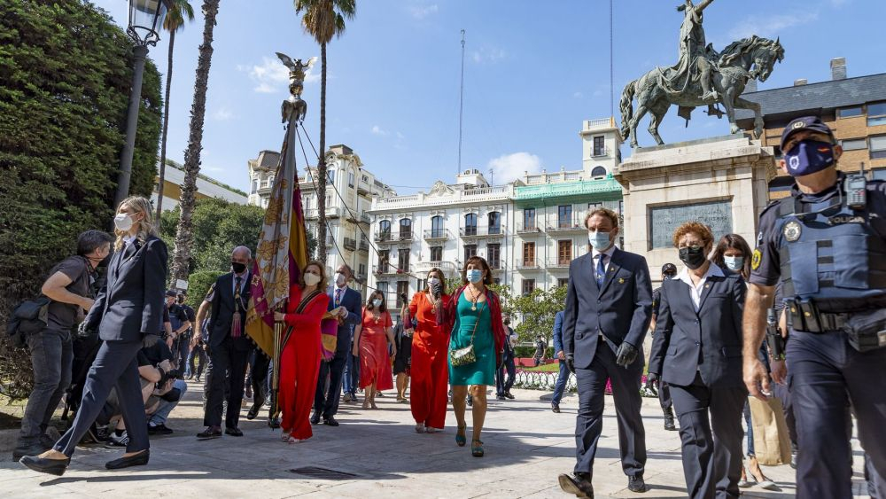 La habitual participación de Compromís per València, Podem València y PSPV-PSOE en la Procesión Cívica del 9 d’Octubre se ha visto este año empañada por el impedimento de la Policía Nacional de acceder al recorrido.