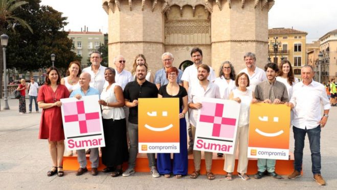 Las Torres de Serranos de València han sido testigos esta mañana de la presentación de la candidatura de Compromís-Sumar a las elecciones generales del 23 de julio. Unos comicios que la coalición afronta como una “ofensiva contra el odio” de Partido Popular y Vox. Una candidatura encabezada, como cabezas de lista, por Àgueda Micó (Més), Alberto Ibáñez (Iniciativa) y Nahuel González (EUPV), que representa "la dignidad de la mayoría valenciana contra el odio que la derecha y la ultraderecha quieren llevar a las instituciones".