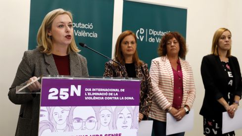 Bajo el lema ‘Por una vida sin trata y explotación sexual’, la Diputación ha adelantado su campaña del 25N con la lectura pública de un manifiesto aprobado en el pleno de noviembre, y en la que han participado, además de Natàlia Enguix, la vicepresidenta segunda de la institución, Reme Mazzolari, la diputada socialista Neus Garrigues y la portavoz de Compromís, Dolors Gimeno. Todas ellas forman parte de esa lucha coral de la Diputació de València “frente a cualquier tipo de violencia, sea cual sea su intensidad, ejercida contra las mujeres”.