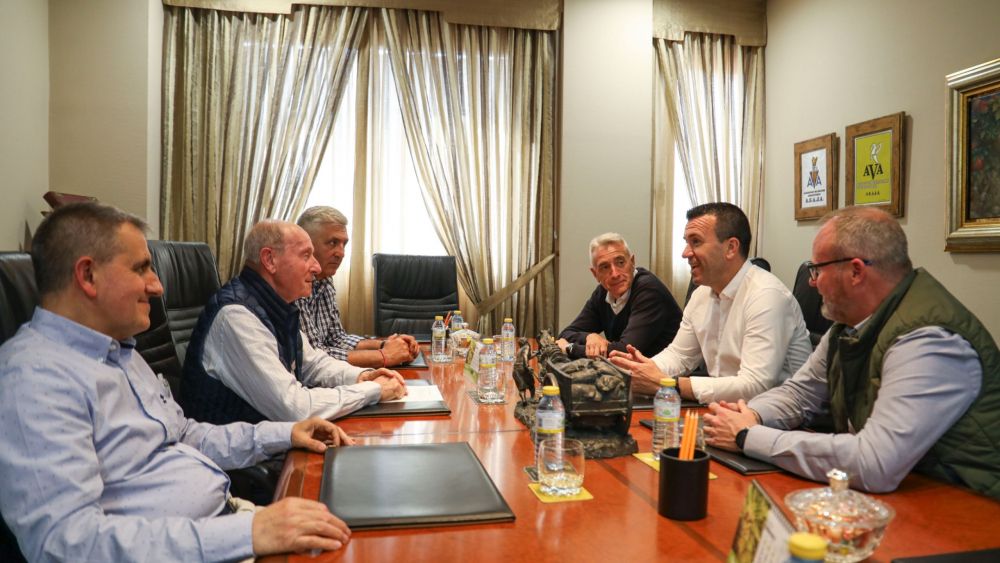 El presidente Mompó, acompañado por el diputado de Medio Ambiente, Avelino Mascarell, se reunió el pasado mes de abril con los responsables de la Asociación Valenciana de Agricultores (AVA-ASAJA) con el objeto de buscar soluciones a los problemas diarios a los que se enfrentan los agricultores y ganaderos. Vicent Mompó analizó las múltiples propuestas de la organización profesional agraria en materias tan preocupantes para el sector como son el control de jabalíes, la mejora de los caminos rurales, la lucha contra los robos y la formación agraria.