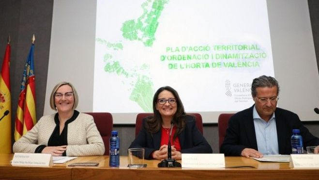 El nuevo Plan de Acción Territorial de la Huerta de Valencia contempla la protección de más de 11.000 hectáreas de suelo agrícola, la recuperación de unas 250 hectáreas de huerta y más de 100 edificaciones tradicionales, en un "nuevo camino que nos aleja de la especulación y de los tiempos oscuros de los 'pelotazos'", ha señalado la vicepresidenta del Consell, Mónica Oltra, en la presentación del documento, mientras que la titular de Vivienda, Obras Públicas y Vertebración del Territorio, María José Salvador, ha desatacado la "amplia participación" y "consenso" con el que nace.