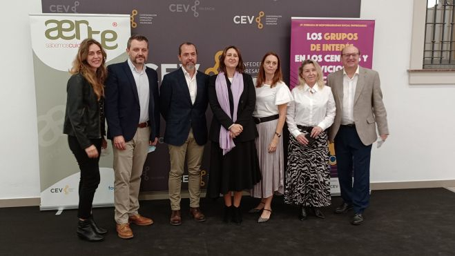 La consellera, junto al presidente de AERTE, José María Toro, ha presentado la 'IV Jornada Responsabilidad Social Empresarial' sobre grupos de interés en los centros y servicios de atención a la dependencia, organizada por la Confederación Empresarial de la Comunitat Valenciana (CEV).