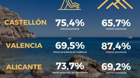 - El litoral de la provincia de Valencia (excluyendo la ciudad de Valencia) anticipa un 69,5 % de ocupación.