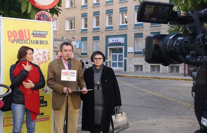 La Plataforma per la Llengua ha presentado, esta mañana, la campaña ‘Prou de valencianofòbia: no en passis ni una més’ (Basta de Valencianofobia: no pases ni una más) con el objetivo de denunciar la impunidad sobre las discriminaciones lingüísticas existentes en el día a día. Así, el lugar escogido para presentar la campaña ha sido el Centro de Especialidades Juan Llorens de Valencia donde, recientemente, y tal y como denunció la Plataforma per la Llengua, se produjo un caso de discriminación lingüística.