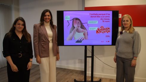 La vicesecretaria de Igualdad del PSPV-PSOE, Rosa Peris, y la secretaria general del PSPV-PSOE de València, Sandra Gómez y la secretaria general de Joves Socialistes de València, Rocio Barbeito, han presentado hoy la campaña del partido para el 25N, Día Internacional de la Eliminación de la Violencia Contra la Mujer, una campaña bajo el lema "Tiene nombre: es violencia machista" que pretende concienciar a la juventud y visibilizar actitudes machistas que sufren muchas jóvenes. Rosa Peris ha destacado que este 25 de noviembre "es especial" porque tenemos "un problema gravísimo debido al número de mujeres víctimas de violencia de género", sumado a un "cuestionamiento permanente de la opinión pública alentado por algunos partidos políticos": "Este 25N llamamos a todos a salir a la calle".