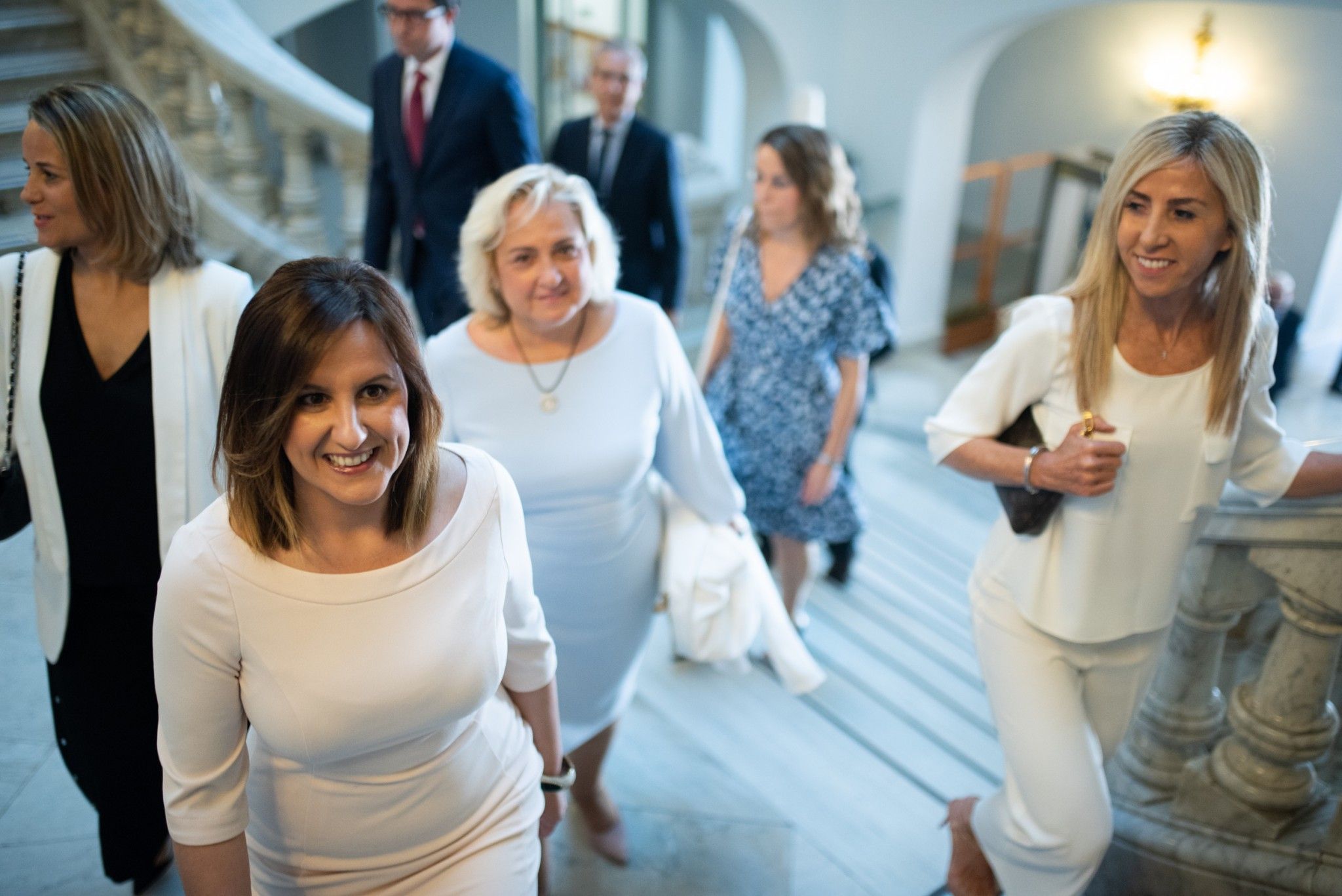 Los primeros en llegar han sido los populares. Todos siguen el mismo recorrido: entran por la puerta principal, suben la escalinata y acceden a una sala lateral al pleno a la espera de que se inicie la sesión. Es Ximo Puig, el recién votado President de la Generalitat y que mañana jurará cargo, el primero que rompe un ritmo que parecía marcado. Observará desde el palco, junto a Enric Morera y un Teniente General del ejército, la sesión que dará continuidad al "gobierno de progreso en València".